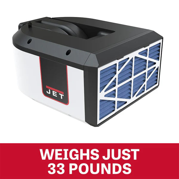 The JET® AFS-1000C Air Filtration System is a must-have for any woodworking shop. The system detects dust levels and can adjust fan speed accordingly. The filter life is also monitored and displayed on the tilted LED display panel. The ABS injection molded body makes the unit lighter and less prone to damage. The system has six speeds to suit any level of dust particles created while working on your projects. The electrical input of the unit is 110V, 1PH, motor is a 3PH, BLDC (brushless direct current motor). The system comes with a 1-micron filter that captures even the smallest dust particles. With a 1000 CFM rating, the AFS-1000C can handle even the largest woodworking projects. The bright LED display shows filter life, speed, and timer settings. The system also comes with a remote control and an intuitive air quality sensor that adjusts the six speeds based on air quality.